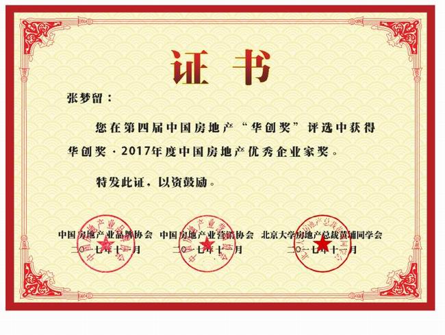 《華創(chuàng)獎(jiǎng)?2017年度中國(guó)房地產(chǎn)***企業(yè)家獎(jiǎng)》